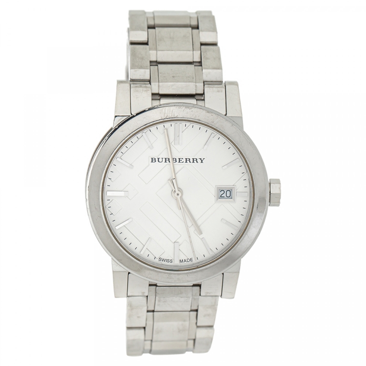 ساعة يد نسائية بربري "بي يو9100" ستانلس ستيل فضية 34 مم