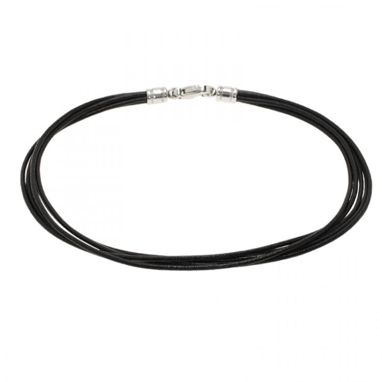 Pre Owned عقد بلغاري بحبل جلد أسود