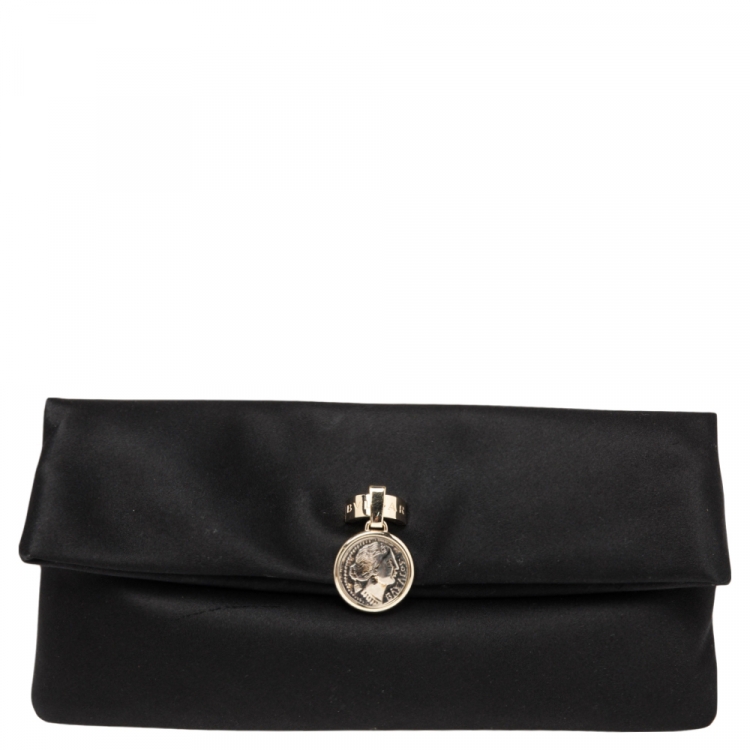 مملوكة مسبقًا حقيبة كلتش بلغاري مونيتي ساتان أسود