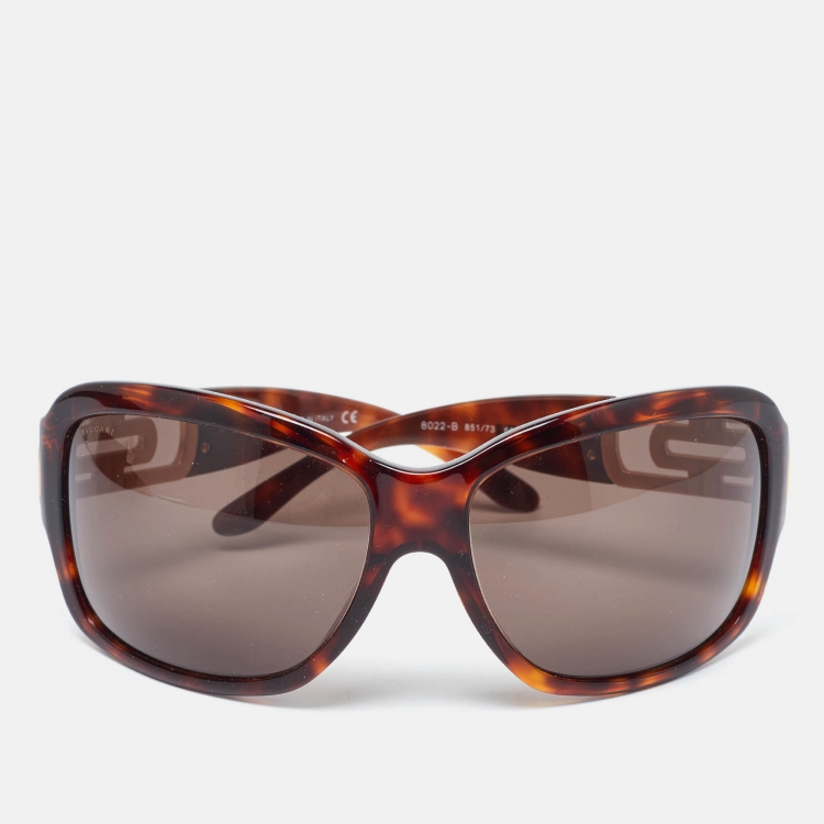 Pre Owned Bvlgari Brown Havana/Brown 8022-B Rectangle Sunglasses