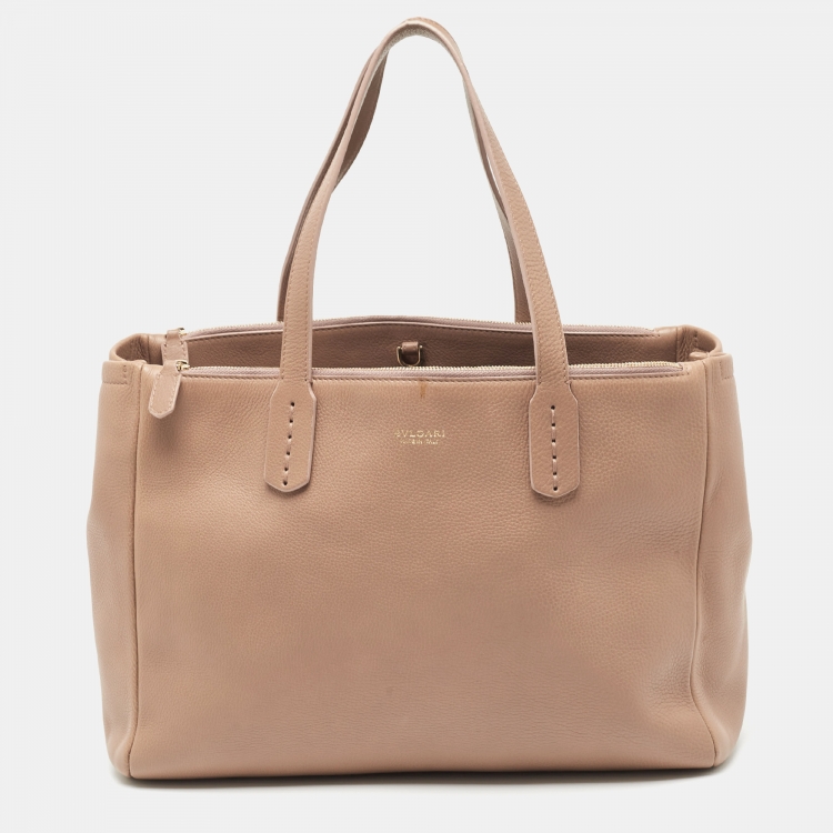 Bvlgari Light Brown Leather Double Zip Tote