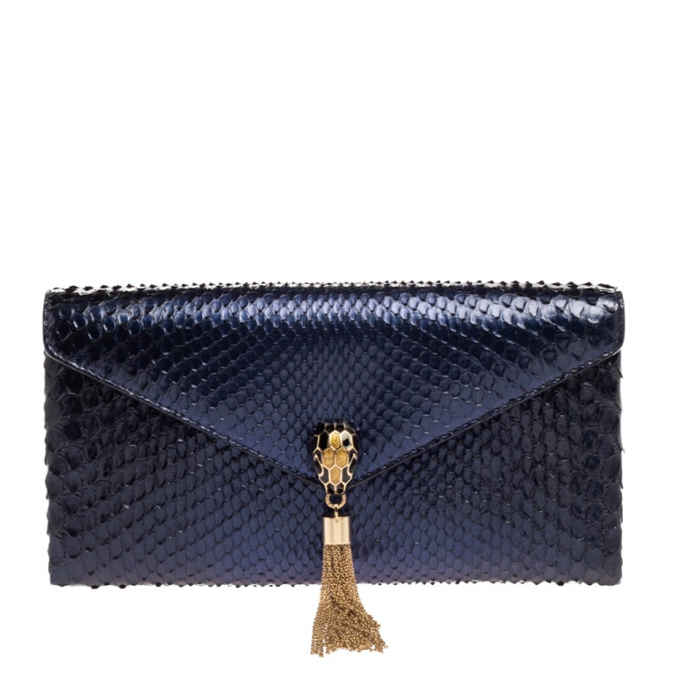 Pre Owned حقيبة كلتش بلغاري جلد ثعبان أومبريه أزرق ميدنايت سيربنتي كوكتيل