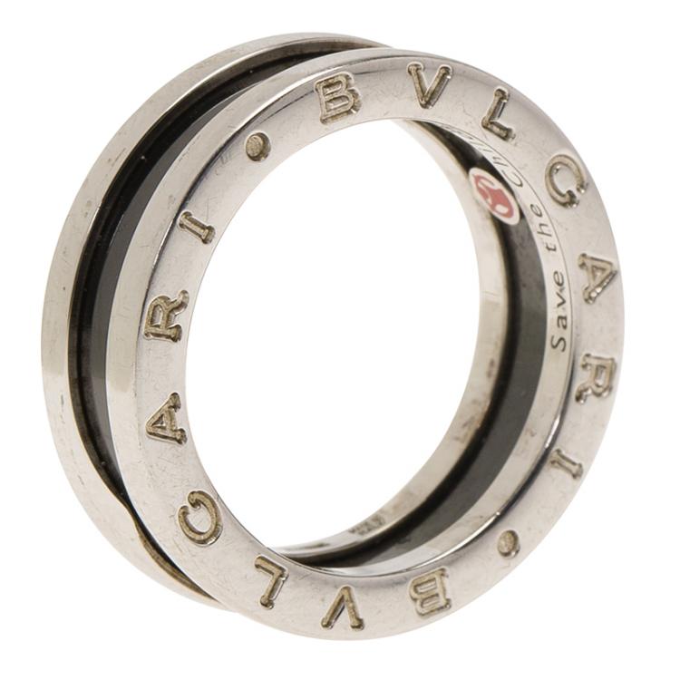 مملوكة مسبقًا خاتم بلغاري سيف ذا شيلدرين حلقة واحدة فضي وسيراميك أسود مقاس 54