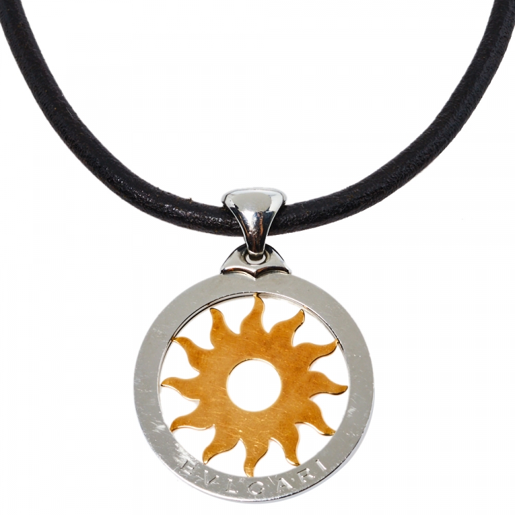 مملوكة مسبقًا قلادة بلغاري توندو صن ذهب عيار 18 وستانلس ستيل بحبل