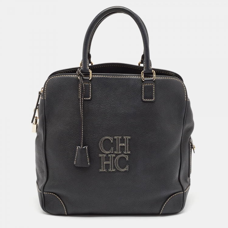 Carolina Herrera Black Leather Middle Zip Satchel