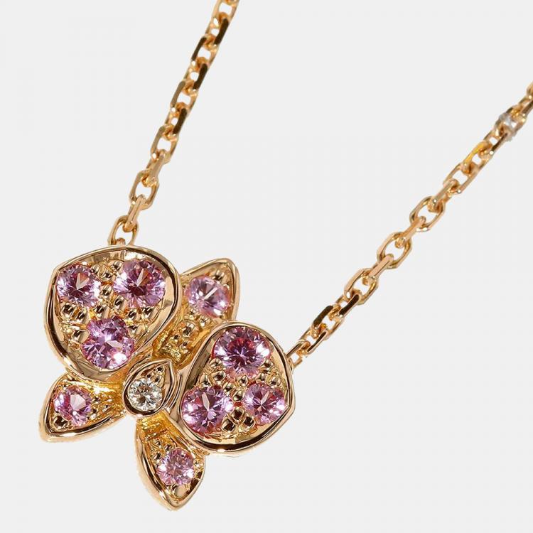 Pre Owned Cartier 18K Rose Gold 0.0054 ctw per piece Diamond and Sapphire Caresse d'Orchidées Par Necklace