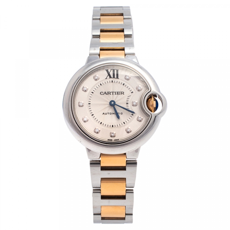 ساعة يد نسائية كارتييه بالون بلو 3489 ألماس ستانلس ستيل وذهب أصفر عيار 18 فضي 33 مم