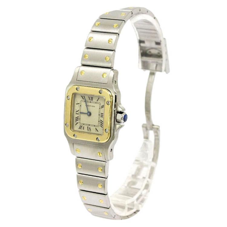 Cartier Silver 18K Yellow Gold and Stainless Steel Santos Galbee Women's Wristwatch 24MM