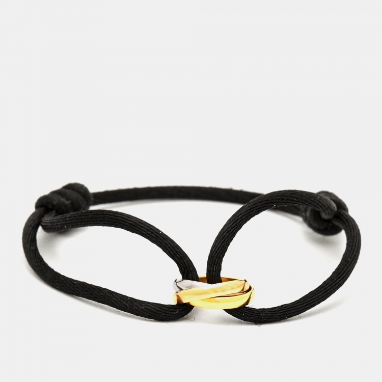 Pre Owned سوار كارتييه ترينيتي ذهب ثلاثي اللون قابل للضبط بحبل أسود