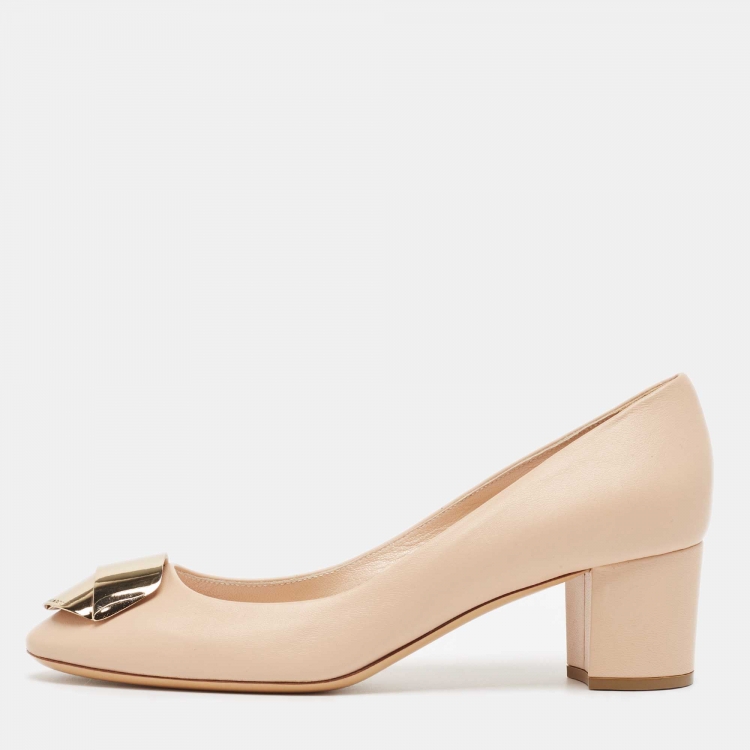 Pre Owned Casadei Beige Leather Block Heel Pumps Size 37