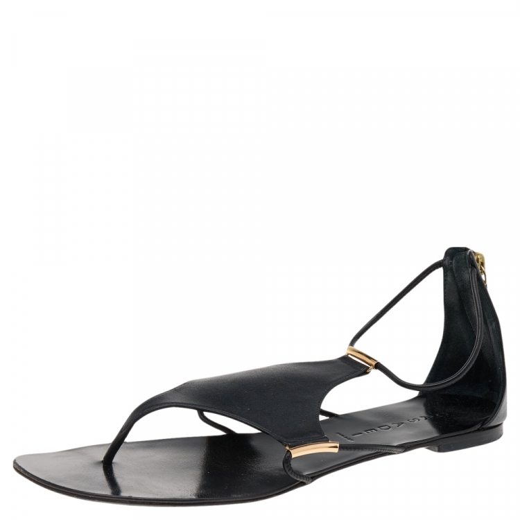 صندل فلات كاسادي جلد أسود بحزام كاحل مقاس 40