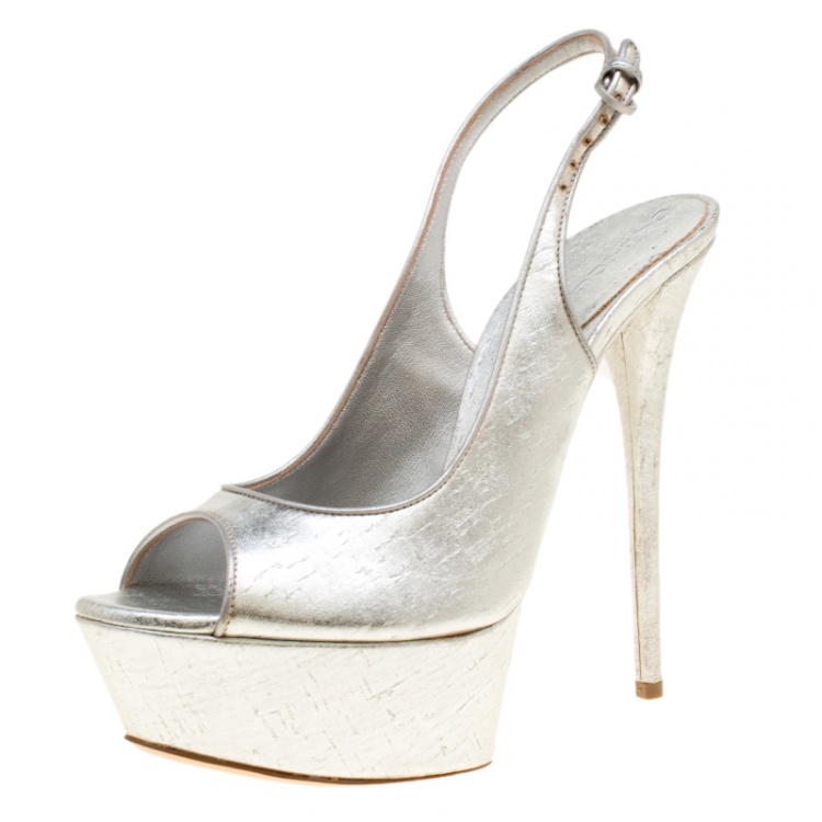 صندل كاساديه فتحة كعب مقدمة مفتوحة بليم جلد فضي مقاس 39.5