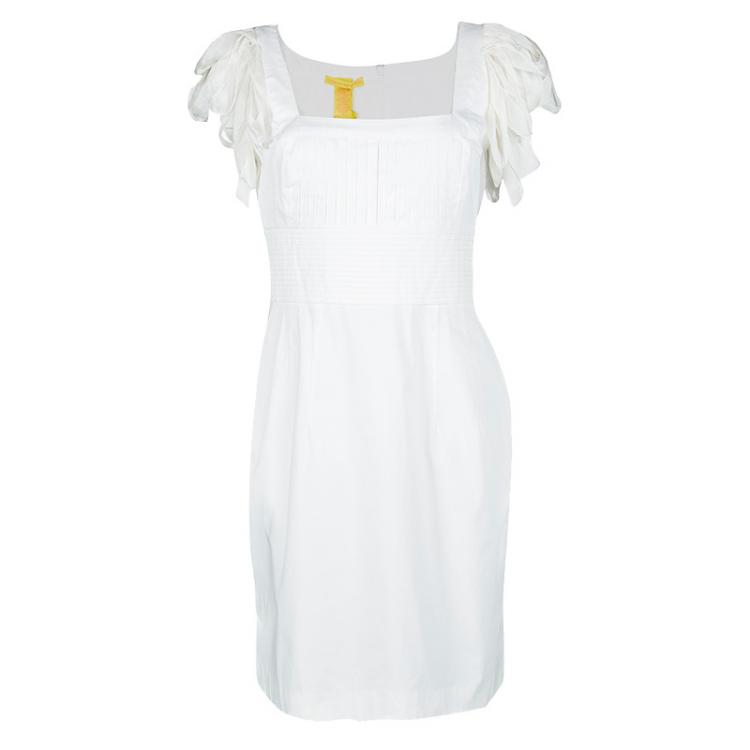 Pre Owned فستان كاثرين مالاندرينو أبيض مقلم بأكمام ديرابيه M