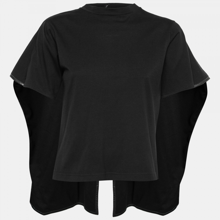 Celine Black Cotton Leather Trimmed Overlay Paneled Short Sleeve T-Shirt XS