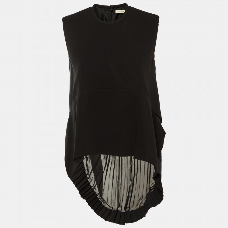Pre Owned توب سيلين حرير أسود طيات تفاصيل الظهر عالي منخفض متوسط