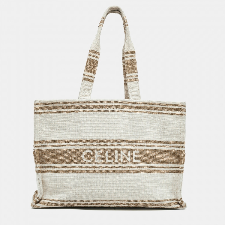 Celine Beige/Brown Striped Jacquard Cabas Thais Tote