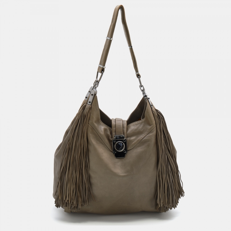 مملوكة مسبقًا حقيبة هوبو سيلي�ن ديمتري جلد رصاصي شراشيب