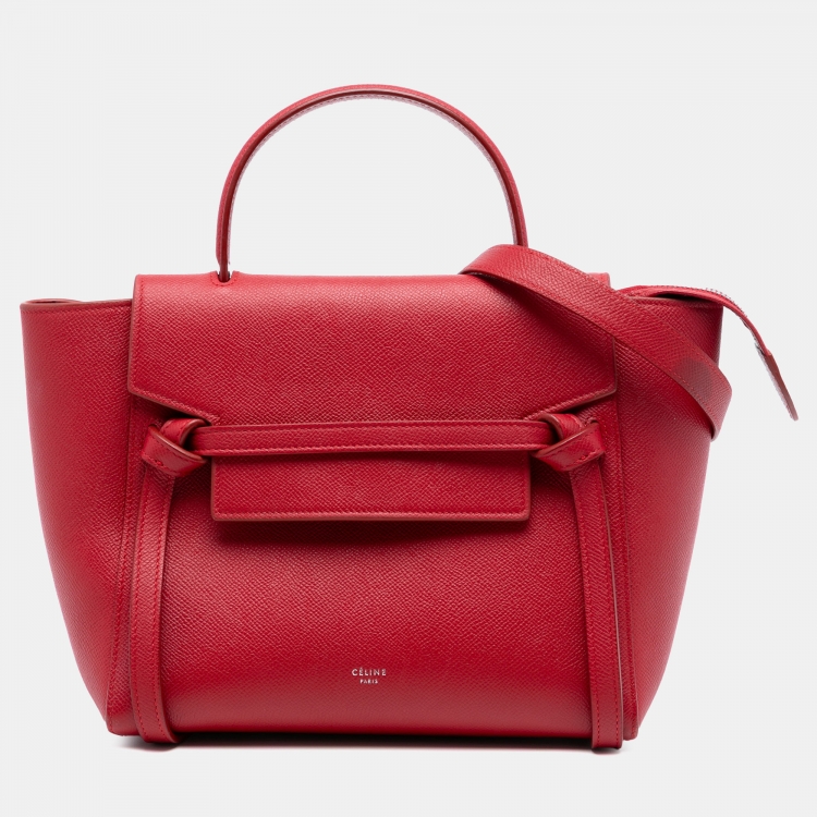 Pre Owned حقيبة سيلين بيلت جلد عجل محبب أحمر ميكرو