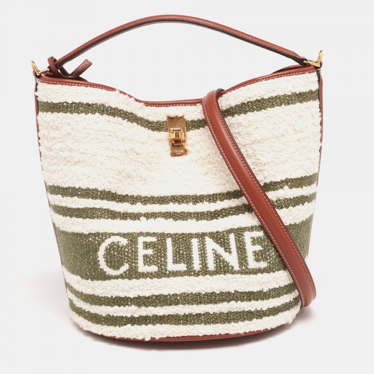 حقيبة باكيت سيلين 16 جلد وتويد مخطط أخضر / أبيض