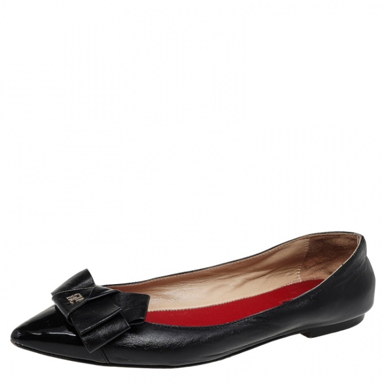 حذاء فلات سي إتش كارولينا هيريرا جلد أسود مقدمة مدببة بفيونكة مقاس 38