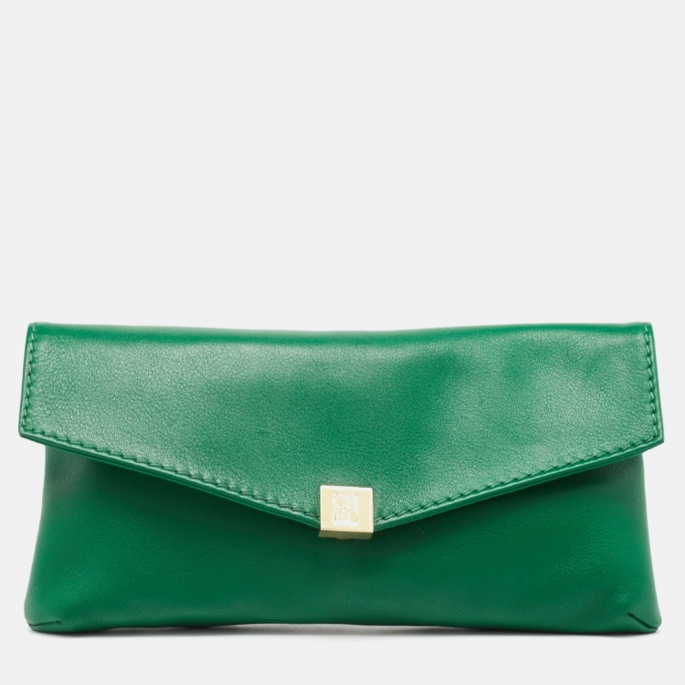 CH Carolina Herrera Green Leather Envelope Clutch