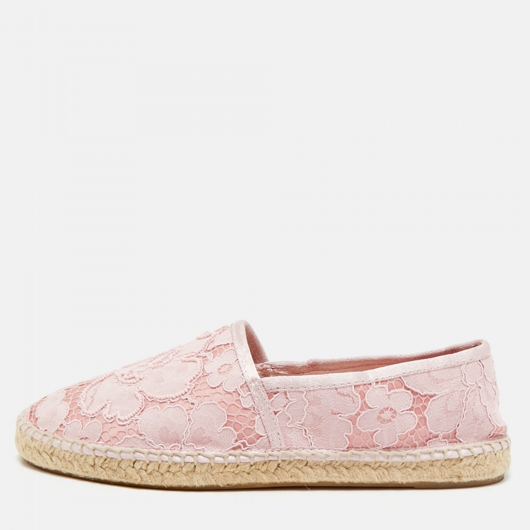 حذاء مسطح إسبادريل مزين باللؤلؤ والدانتيل الوردي سي اتش كارولينا هيريرا مقاس 39
