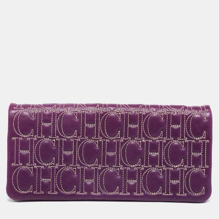 حقيبة كلتش سي إتش كارولينا هيريرا جلد بنفسجي مونوغرامي مطرزة بقلاب
