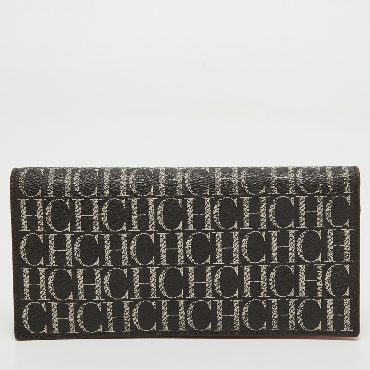 CH Carolina Herrera Brown/White Monogram Coated Canvas Bifold Long Wallet