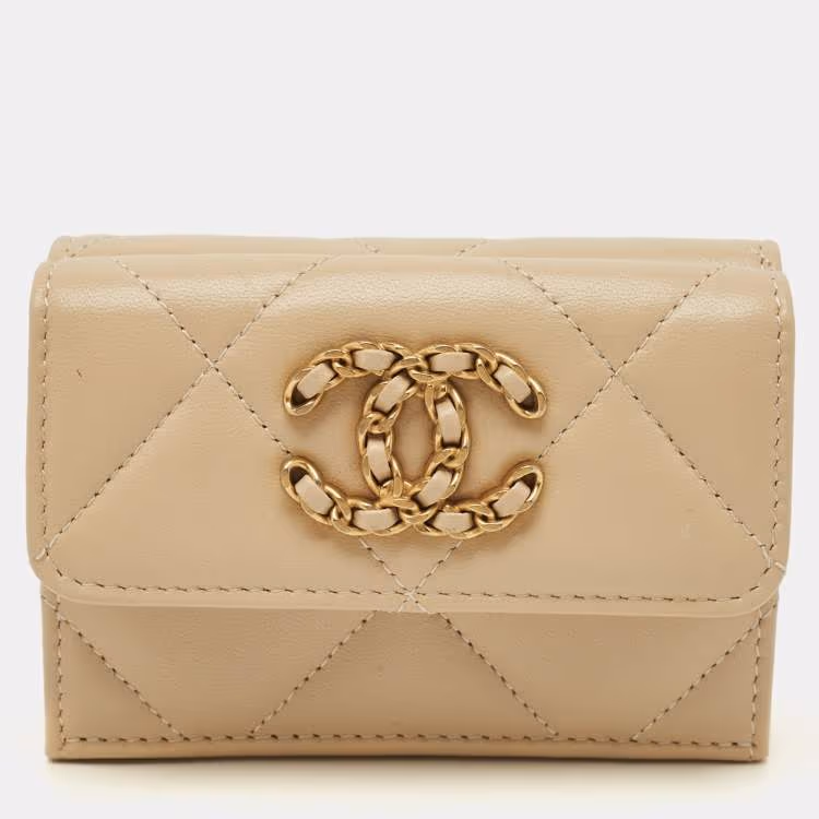 محفظة شانيل 19 جلد مبطن أسود ثلاثية الطي