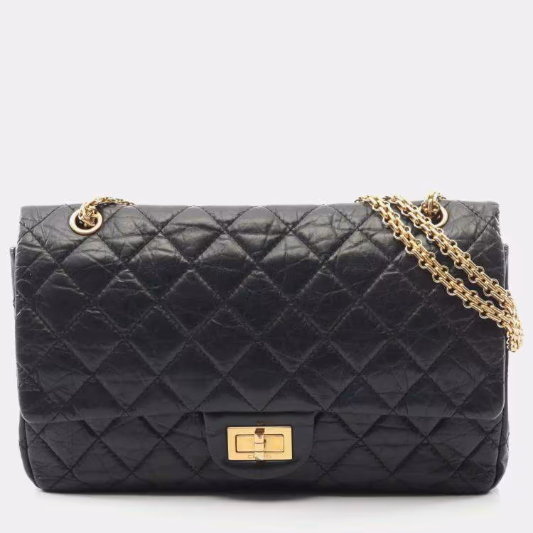 حقيبة شانيل 2.55 ماتلاسي ماكسي دابل فلاب للكتف من جلد العجل باللون الأسود