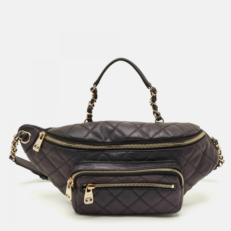 Pre Owned حقيبة خصر شانيل حزام جلد مبطن معدني كافيار