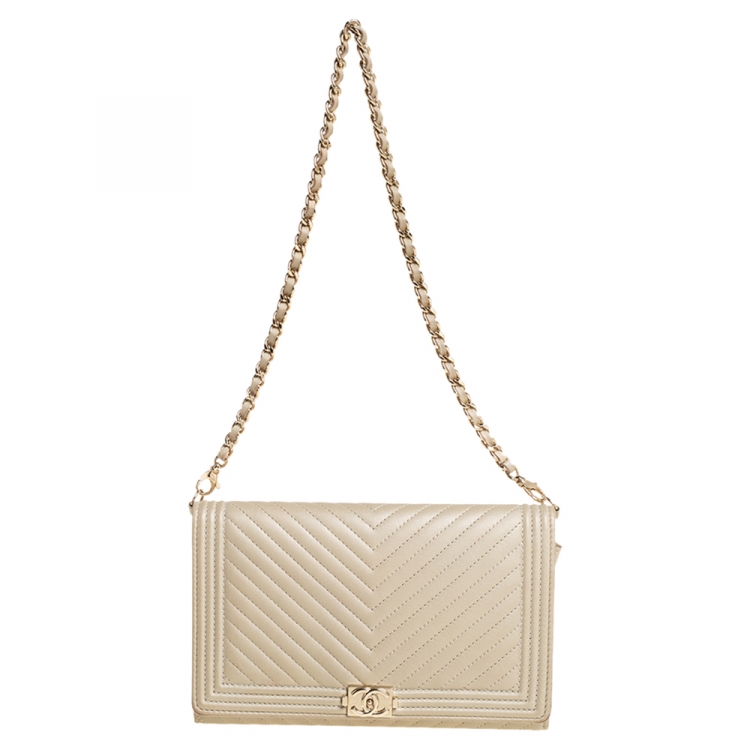 مملوكة مسبقًا محفظة شانيل بوي جلد مبطن أخضر موس بسلسلة