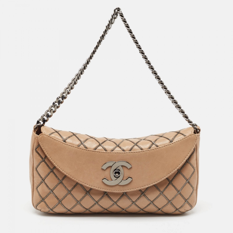 Chanel Beige Chain Stitch Lambskin Leather Shoulder Bag
