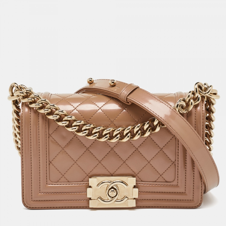 Chanel Beige Quilted Patent Leather Small Boy Flap Bag