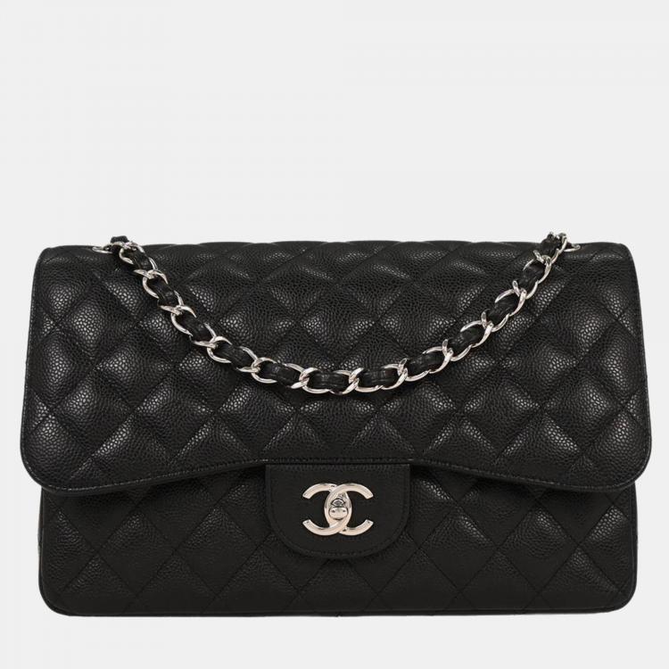 Pre Owned حقيبة شانيل كلاسيكية سوداء كبيرة مزدوجة من جلد العجل بشريط مزدوج