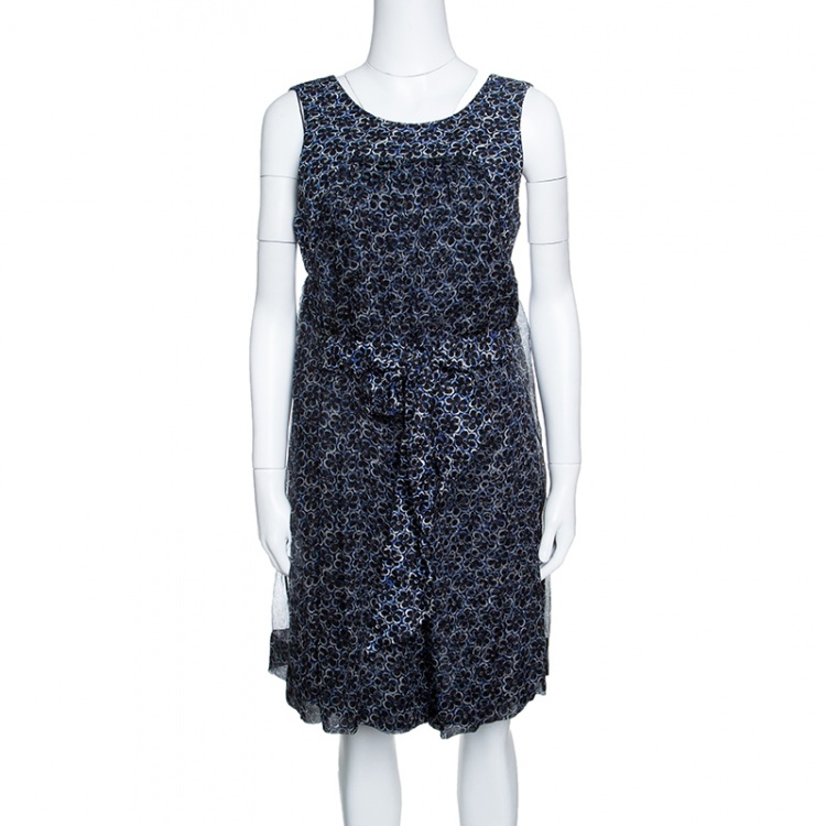 Pre Owned رومبر شانيل حرير كاميليا أسود مطبوع بحزام M