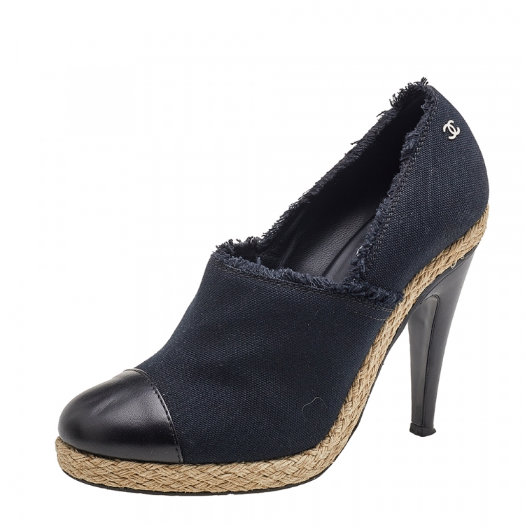 مملوكة مسبقًا حذاء بوت شانيل إسبادريل جلد وكانفاس أسود بغطاء مقدمة مقاس 41
