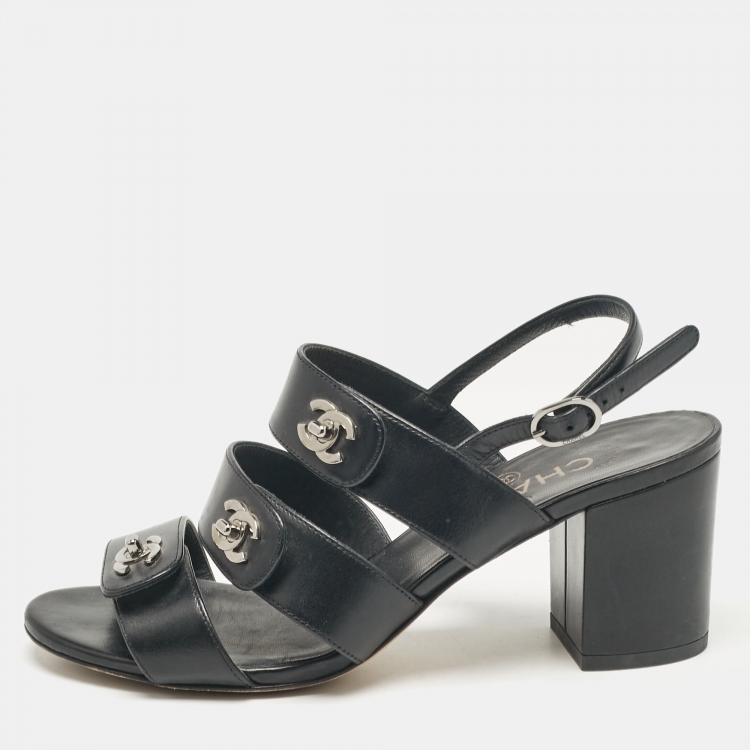 Pre Owned Chanel Black Leather Ankle Strap Sandals Size 37
