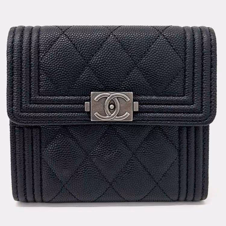 Pre Owned محفظة شانيلا بوي قابلة للطي جلد كافيار سوداء