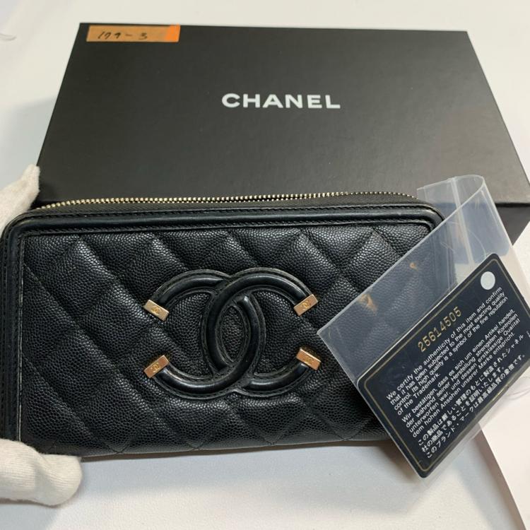 Chanel Black Leather Caviar CC Filigree Zippy Wallet