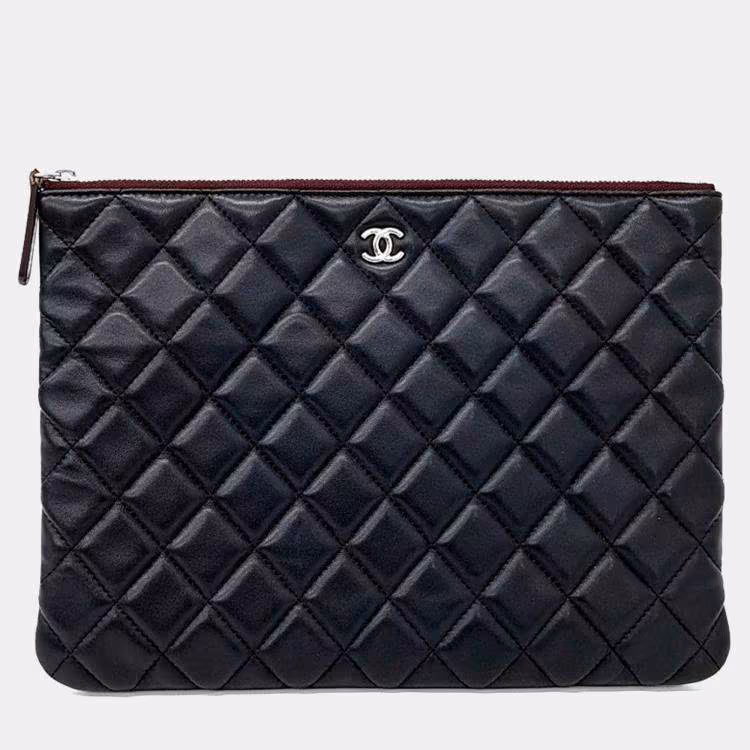 حقيبة كلاتش شانيل جلد حمل أسود وسط جديد