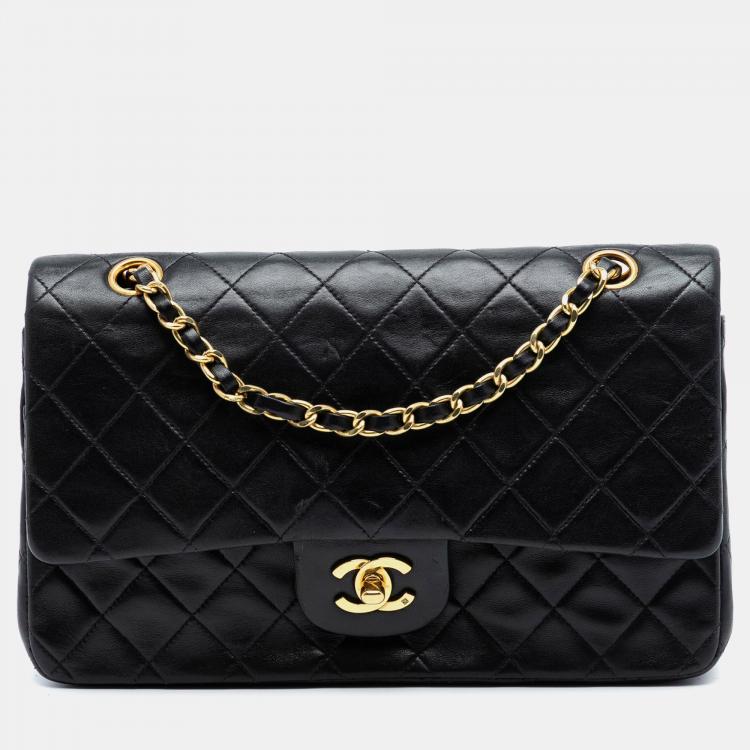 حقيبة شانيل كلاسيك مزدوجة باللون الأسود من جلد الغنم بحجم متوسط