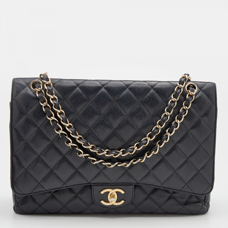 حقيبة شانيل ماكسي كلاسيك جلد كافيار مبطن أسود بقلاب مزدوج