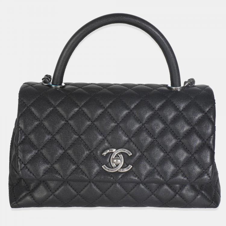 مملوكة مسبقًا حقيبة شانيل كوكو سوداء جلد مبطنة متوسطة بمقبض علوي كافيار