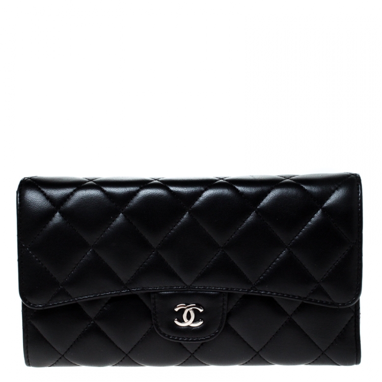Pre Owned محفظة شانيل قلاب كلاسيك جلد مبطنة سوداء