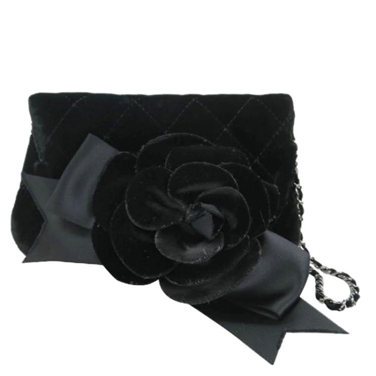 حقيبة كتف شانيل كاميليا بويش قطيفة سوداء