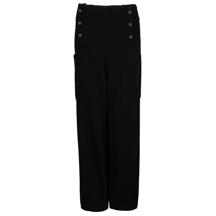 بنطلون شانيل صوف أسود خصر مرتفع أرجل واسعة L