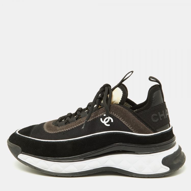 Chanel Black/White Suede and Knit Fabric CC Low Top Sneakers Size 40