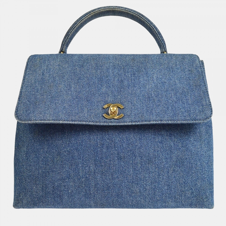 Pre Owned حقيبة شانيل دينم أزرق بمقبض علوي