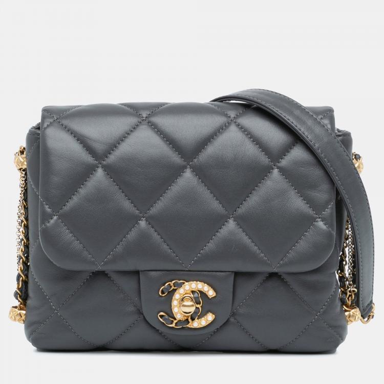 Pre Owned حقيبة ش�انيل جلد الحمل المبطن كروش أزرق بمرفقات صغيرة